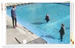そして、ウンサンに手を掛けてプールに落としてしまいました。