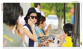 会話は携帯で、間を取り持つのはヒョンギュ。