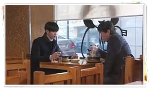 ト・ミンジュンとうどんを食べていた時、フィギョンがら電話がありました。