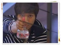ヒジンに接近しよとすると、ドンミンの顔に水がかかりました。
