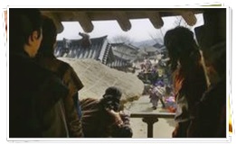 開京では街中をキムが道を分けさせ、輿に乗って通っていました。