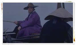 小舟に乗ったチャン・イッコンが釣りをしていました。