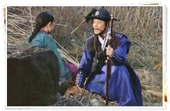 トンイの兄のチェ・ドンジュを迎えに来たトンイ。