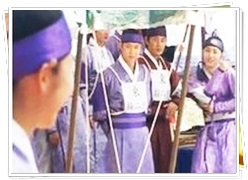 ユニと掌議が向かい合った時、チョソクが来て妓生の信義を