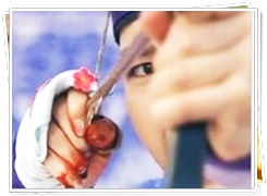 弓を引いた時に、糸が切れてしまい違う弓を手にしました。